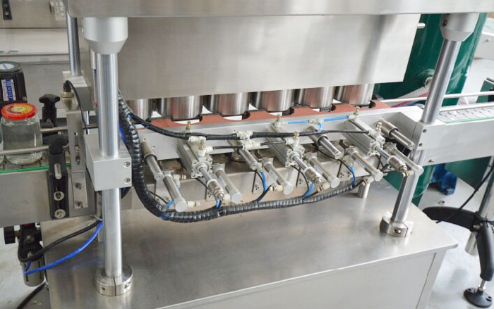 罐頭真空封蓋機用于調味品醬、水產罐頭、水果罐頭等采用目前環保的玻璃瓶包裝后對瓶內真空度有比較高要求的三旋、四旋蓋的玻璃瓶進行封蓋,本機配上真空系統后,能先對玻璃瓶內進行抽吸真空,然后再進行旋蓋封口,以延長瓶內容物的保質期及增強口感,而且不用加熱以保持物料色澤不變。實行自動進瓶、自動封蓋、自動進行抽真空。