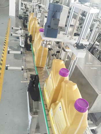 設備描述:潤滑油灌裝旋蓋一體機為活塞式計量方式。計量范圍為1升-5升,離合式旋蓋結構,確保旋蓋合格率高,不傷蓋。本設備為灌裝旋蓋一體機,結構緊湊,性價比高。該型號灌裝機適用于醫藥、日化、食品、農藥及特殊行業,是對酒精等液體進行灌裝的理想設備。
