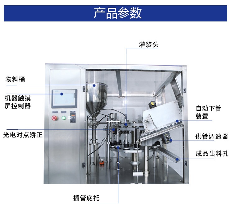 軟管灌裝封尾機適用于醫藥、食品、化妝品、日用化工用品等行業的塑管、鋁塑復合管灌裝封尾。軟管灌裝封尾機可將各種糊狀